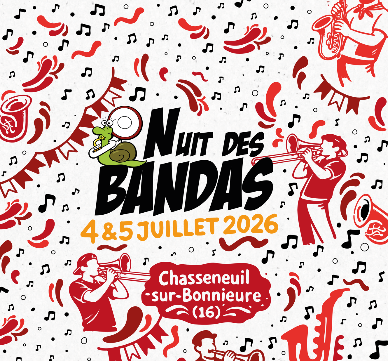 Tous les 2 ans le 1er samedi du mois de juillet, nous organisons une "Nuit des Bandas " au cœur de notre commune. Cette fête reflète notre vision et notre univers musical, afin de créer un moment de partage et de convivialité. N'hésitez pas à venir nous voir en prestation ou nous contacter par notre site ou notre facebook, pour un futur projet de prestation musicale.